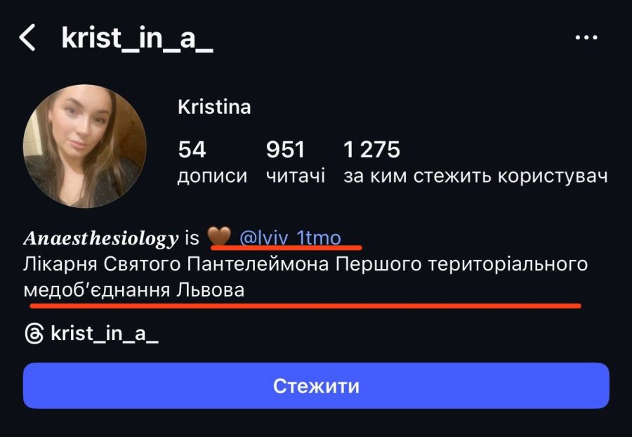 Скриншот сторінки лікарки-анестезіологині до того, як вона забрала інформацію з профілю. Фото: feline_behaviorist / Threads