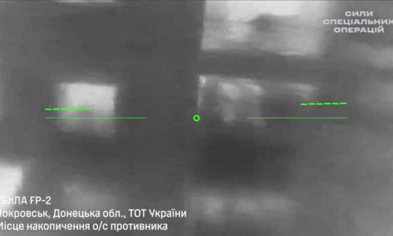 У місті Покровськ дрони ССО знищили місце накопичення особового складу противника. БПЛА типу баражуючий боєприпас поцілили в багатоповерхівку, де осідали російські військові для подальшого перегрупування і спроби просування.