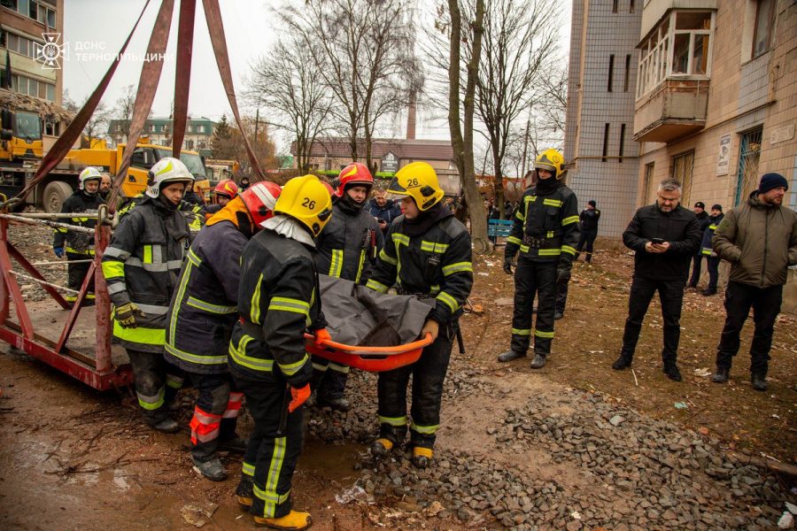 У Тернополі кількість загиблих внаслідок російського удару зросла до 31. З-під завалів зруйнованого будинку дістали тіла ще трьох людей – жінки та двох дітей. Пошукові роботи тривають. Про це повідомили у пресслужбі Нацполіції.