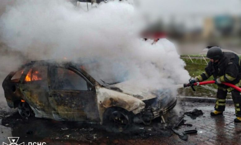 Через скид вибухонебезпечного предмета загорівся газовий модуль та легкова автівка на території АЗС.