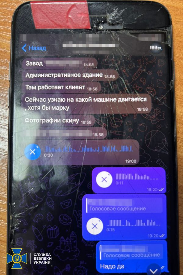 Після завершення розвідвилазки фігурант месенджером звітував про свою роботу кураторові з РФ, додавши до повідомлення файли відеоспостереження. Потім він чекав від російського спецслужбіста подальших вказівок щодо способів ліквідації українського інженера.