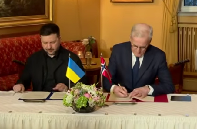 Президент України Володимир Зеленський та прем’єр-міністр Йонас Гар Стере підписали декларацію про посилення оборонного та безпекового співробітництва між країнами. Документ було підписано 14 квітня під час спільної пресконференції в Осло.