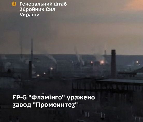 Українські військові ракетами вітчизняного виробництва «Фламінго» уразили завод «Промсинтез», де росіяни виробляють вибухові речовини. Про це Львівському порталу 28 березня повідомили у Генштабі.