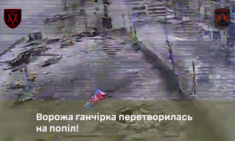 Пілоти роти ударних безпілотників «Привид» механізованого батальйону 41-ї бригади швидко навели лад і знищили ворожу символіку.