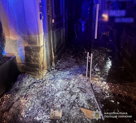 Обійшлося без постраждалих. Втім вогонь пошкодив фасад і двері закладу, а також декоративне дерево, яке знаходилося поблизу місця пожежі.