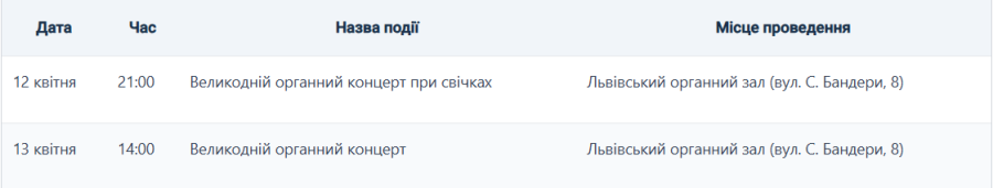 Події у Львівському органному залі (вул. С. Бандери, 8)