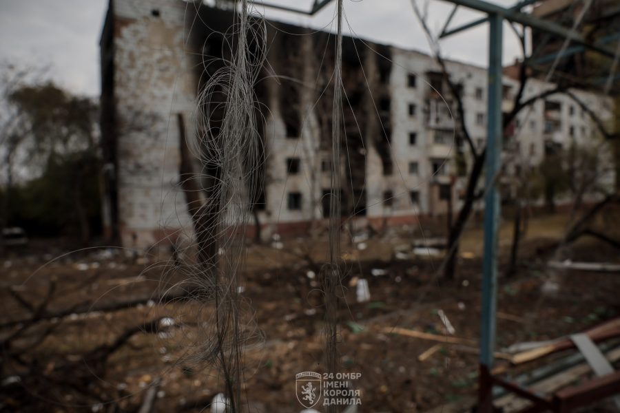 На світлинах видно не лише знищені й спалені будинки, машини чи розбиті дороги, а й церкви. По місту видніють жмути дротів від оптоволоконних дронів, які активно застосовують російські окупанти.
