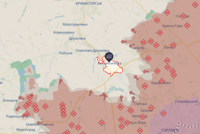Згідно з даними Deepstate, відстань від Часового Яру до Костянтинівки становить менше 10 км.