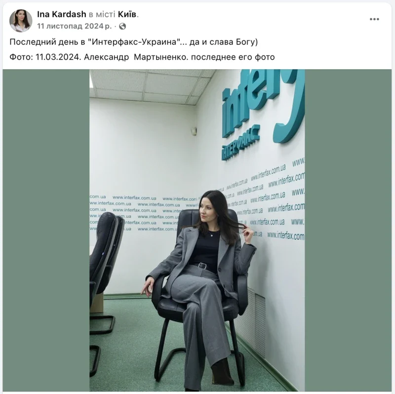Теперішній директор «Інтерфакс-Україна» Єгор Болтрик підтвердив Детектору медіа, що Інна Кардаш працювала в штаті агенції з 2021 по 2024 рік, однак від подальших коментарів відмовився.