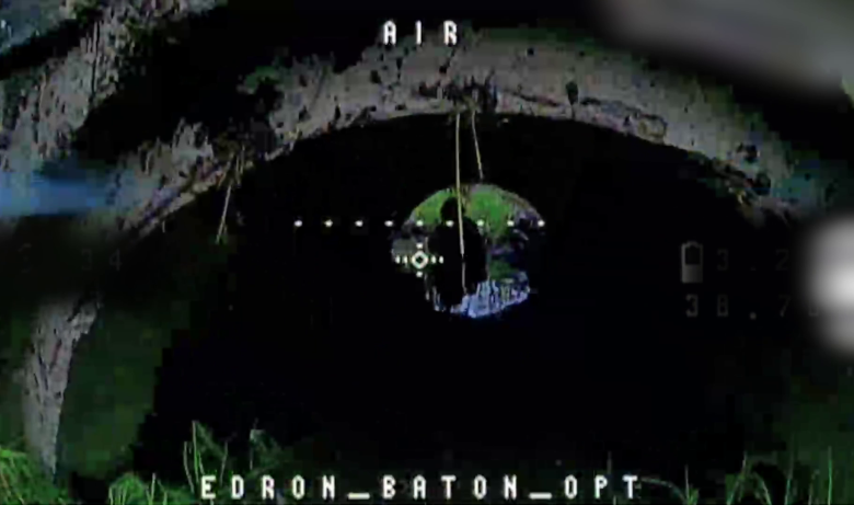 На кадрах видно, як наш дрон залітає в трубу під дорогою і помічає окупанта, який стоїть по пояс у воді. Це було останнє фото загарбника.