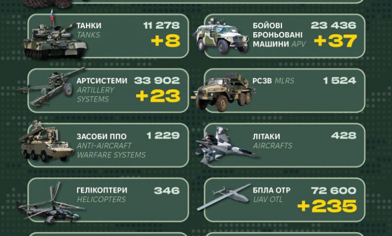 - особового складу ‒ 1132200 (+1130) осіб ліквідовано