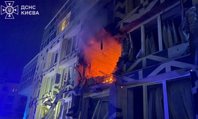 У нічний час під час ворожого повітряного удару по столиці зафіксовано влучання безпілотника у будівлю приватного медичного центру в Оболонському районі із подальшим загоранням.