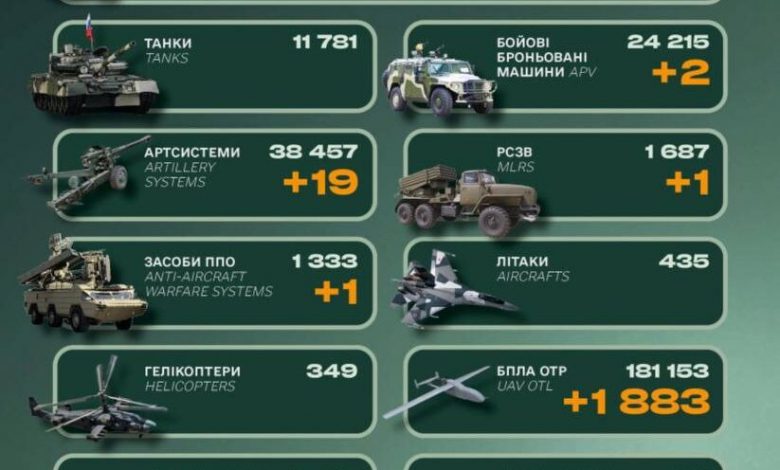 - особового складу — 1 279 930 (+760) осіб ліквідовано;