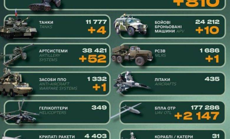 За минулу добу Сили оборони ліквідували ще 810 російських окупантів та знищили 2395 одиниць їхньої техніки.