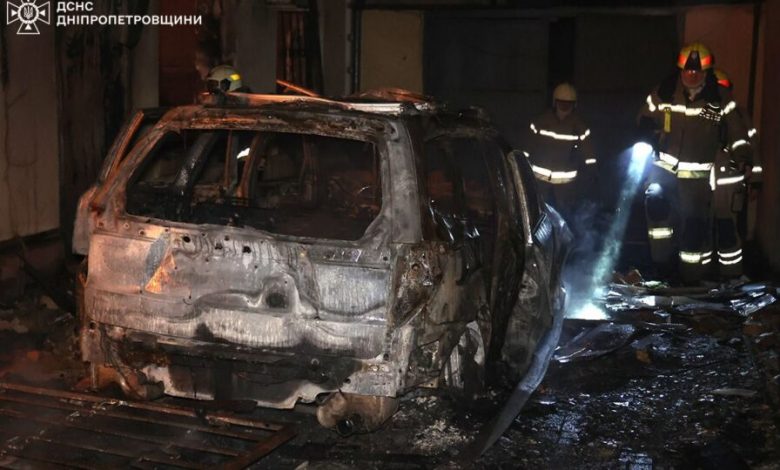 У Дніпрі російський БПЛА влучив в одноповерхову будівлю, що не експлуатувалася. Виникла пожежа, знищено один автомобіль, ще один — пошкоджений.