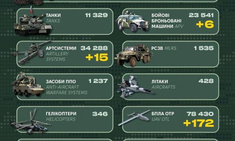 Отже, загальні бойові втрати противника з 24.02.22 по 06.11.25 орієнтовно становлять: