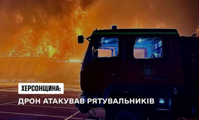 Російські загарбники атакували ударним безпілотником українських рятувальників у Херсоні.