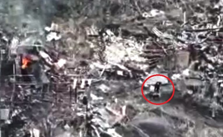 При цьому, як видно на опублікованих кадрах, один із ворожих військових вижив, хоча і втратив в результаті прильоту своїх поплічників, зброю та навіть штани.