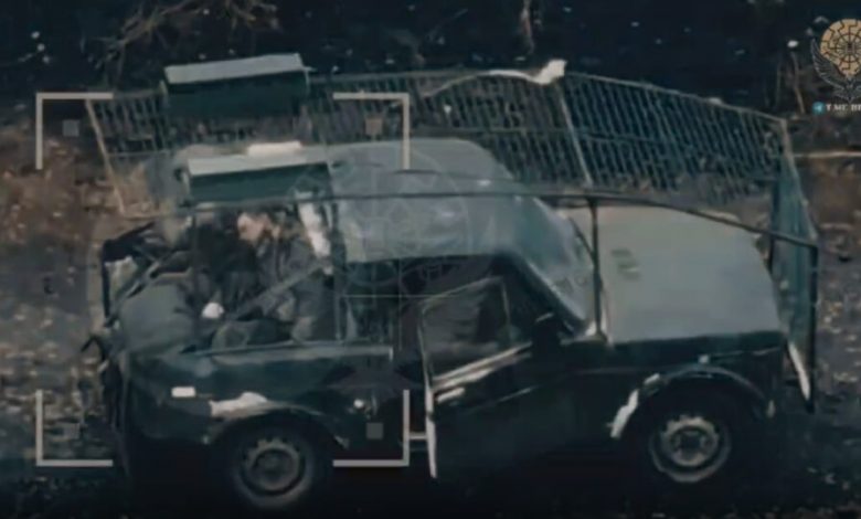 На відео видно, як оператори зафіксували рух броньованої «Ниви», обвішаної засобами радіоелектронної боротьби (РЕБ) і захисними антидроновими сітками.