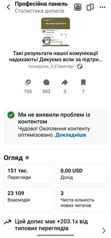 За добу цей допис зібрав значні охоплення на ФБ: станом на 12:00 31 грудня його переглянули понад 151 тис. людей та понад 700 користувачів вподобали.
