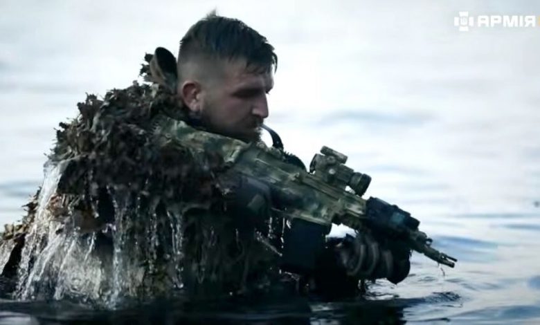 Командир окремого водолазного загону Центру спеціального призначення «Омега» з позивним «Крава» показав зброю, якою користується на завданнях.