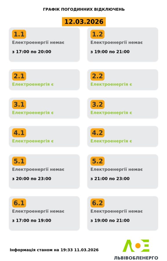 Як вимикатимуть світло на Львівщині 12 березня