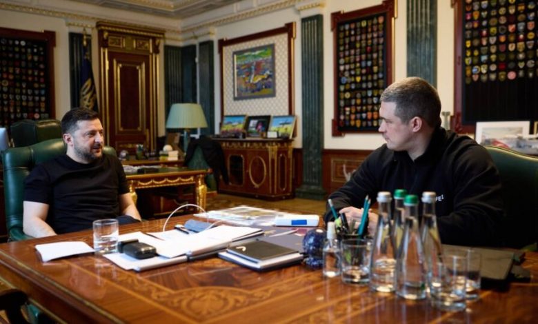 Міністр оборони Михайло Федоров доповідає Президенту Володимиру Зеленському. 3 квітня 2026 року. Фото з каналу Президента