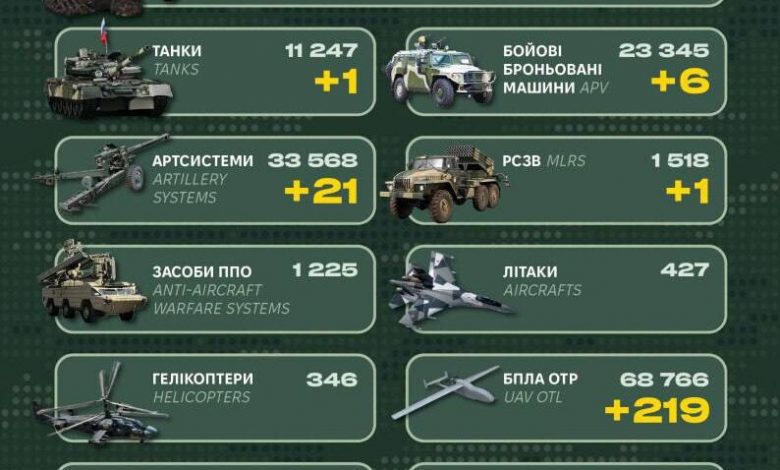 Таким чином загальні бойові втрати противника з 24.02.22 по 11.10.25 орієнтовно становлять: