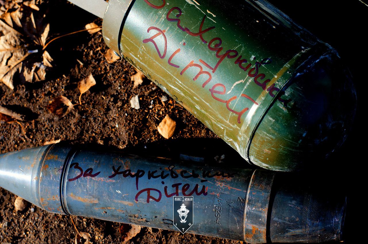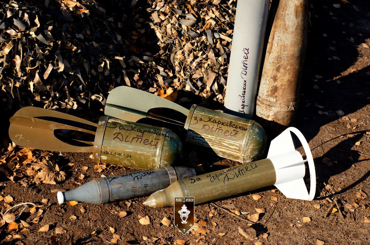 «За харківських дітей!», «За Харків!», «За українських дітей!» — пишуть на потужних боєприпасах для важких бомберів та FPV-дронів бійці 1-го штурмового батальйону 92 окремої штурмової бригади імені кошового отамана Івана Сірка.