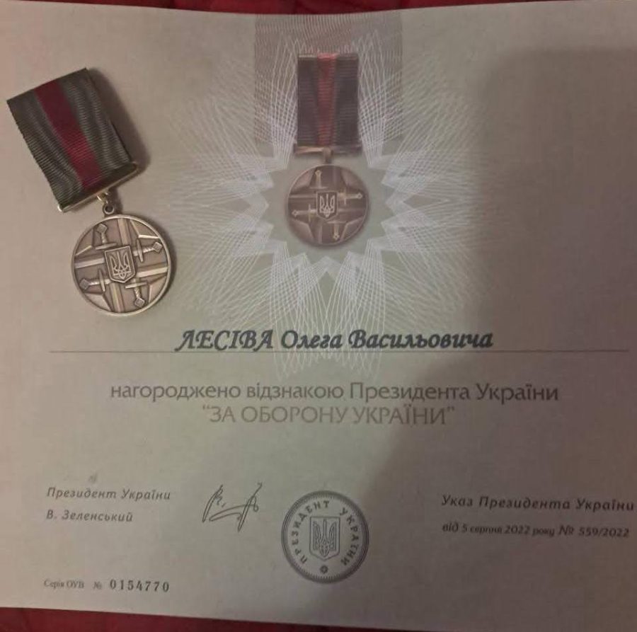 Також захисника відзначили президентською медаллю «За оборону України». Її, як відомо, вручають за вагомий особистий внесок у зміцнення обороноздатності держави та захист її територіальної цілісності.