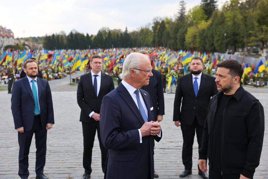 У п’ятницю, 17 квітня, до Львова з офіційним візитом прибули президент Володимир Зеленський та король Швеції Карл XVI Густав. Свою поїздку лідери розпочали із вшанування пам’яті полеглих українських захисників. Про це повідомив очільник Львівської ОВА Максим Козицький.