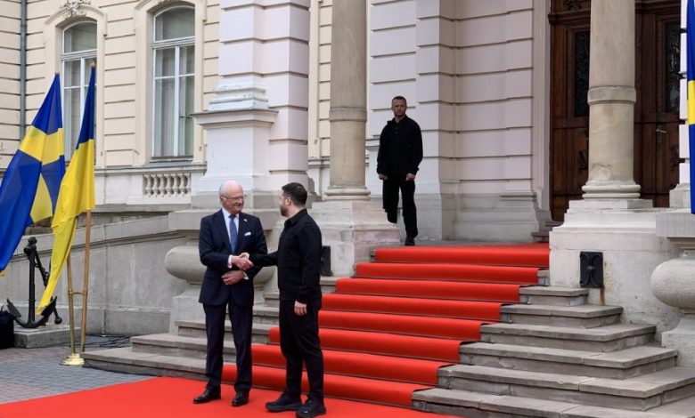 «Для нас це дуже велика честь. Дуже дякую, Ваша величносте, за те, що постійно підтримуєте Україну, підтримуєте зі самого початку цієї війни», — сказав Володимир Зеленський, зустрічаючи короля Швеції.