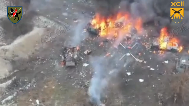 Кадри ураження окупантів та догорання їх техніки 110-та ОМБр оприлюднила в соцмережах.