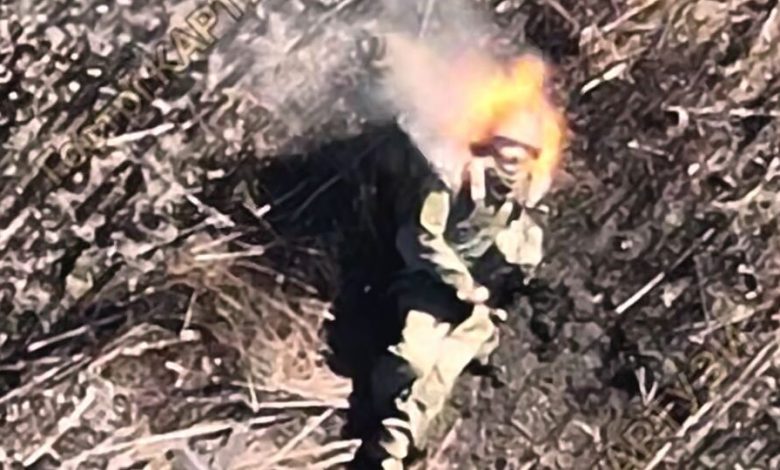 Згорів, мов сірник — рюкзак згубив окупанта, який йшов полем на штурм Покровська