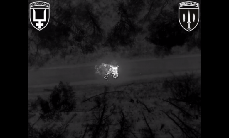 «В темряві ворог намагається діяти тихо, виставляючи свої дрони-ждуни вздовж доріг. Вони чекають на ціль, щоб ударити зненацька по техніці або живій силі. Бойова робота пілотів батальйону Signum. Точні скиди. Контроль кожного метра дороги.